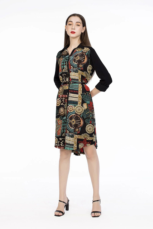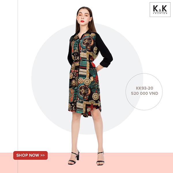 Tuy sử dụng họa tiết với những gam màu đối lập cực kỳ nổi bật, nhưng mẫu đầm KK93-20 lại không hề rối mắt hay khó ứng dụng, nhờ thiết kế sơ mi cài nút thanh lịch, phần tay, cổ áo phối màu cực kỳ hợp lý đặc biệt là phần nhấn xếp ly tinh tế phía sau. Lưu ý, hãy sử dụng chiếc thắt lưng da mảnh đầy cá tính đi kèm để nàng không có cảm giác luộm thuộm hay như bơi trong chiếc đầm này mà còn tạo được vòng eo thon gọn nữa đấy. Nếu như nàng phối hợp item này với những túi xách và giày cao gót đen quyến rũ, chắc chắn nàng sẽ trở thành quý cô sành điệu và thanh lịch trong bất cứ sự kiện nào.