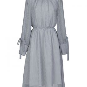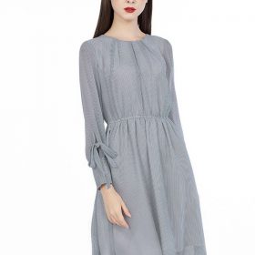 Những mẫu đầm kẻ sọc, tay dài, phối nơ điệu đà như KK92-39 vẫn luôn được quý cô công sở ưa thích trong mùa đông vì vừa thanh lịch, vừa nữ tính, lại hợp thời tiết. Điểm mạnh của mẫu đầm là thiết kế xòe bồng bềnh trên nền chất liệu voan lụa vô cùng nhẹ nhàng, tùng váy bất đối xứng khiến mỗi bước di chuyển của nàng thêm phần mềm mại, duyên dáng. Đây là một thiết kế mà nàng có thể diện ở bất cứ đâu, kể cả khi đi làm, đi chơi, dạo phố.