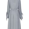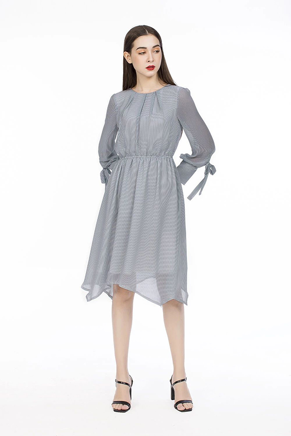 Những mẫu đầm kẻ sọc, tay dài, phối nơ điệu đà như KK92-39 vẫn luôn được quý cô công sở ưa thích trong mùa đông vì vừa thanh lịch, vừa nữ tính, lại hợp thời tiết. Điểm mạnh của mẫu đầm là thiết kế xòe bồng bềnh trên nền chất liệu voan lụa vô cùng nhẹ nhàng, tùng váy bất đối xứng khiến mỗi bước di chuyển của nàng thêm phần mềm mại, duyên dáng. Đây là một thiết kế mà nàng có thể diện ở bất cứ đâu, kể cả khi đi làm, đi chơi, dạo phố.